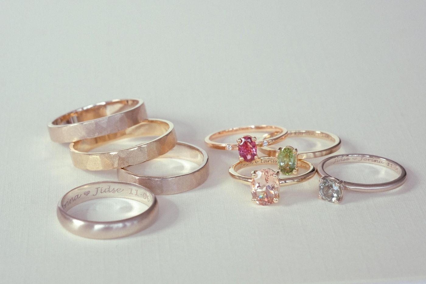 For several seasons now, the wedding rings on Blind Getrouwd have been crafted with care by our hands. Tailored to each couple, they continue to inspire other romantics to choose rings that tell their own love story. → To tailor the design of your wedding rings entirely to your wishes, we recommend scheduling an appointment.