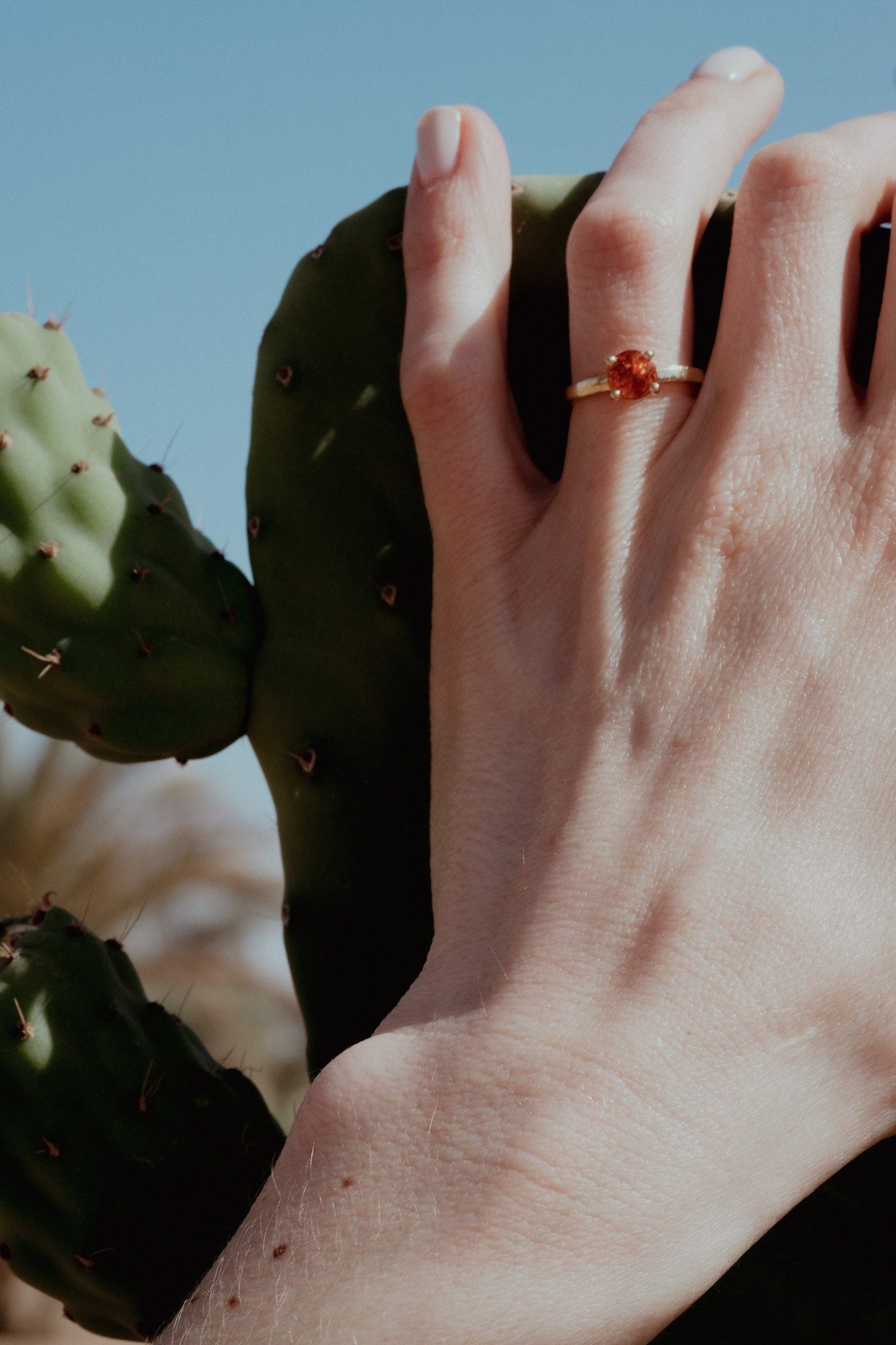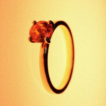 A timeless solitaire in a vibrant mandarin orange – pure and powerful. Effortlessly worn every day, yet made to shine on the most special of nights. → Immediately available in size 50 (yellow gold).